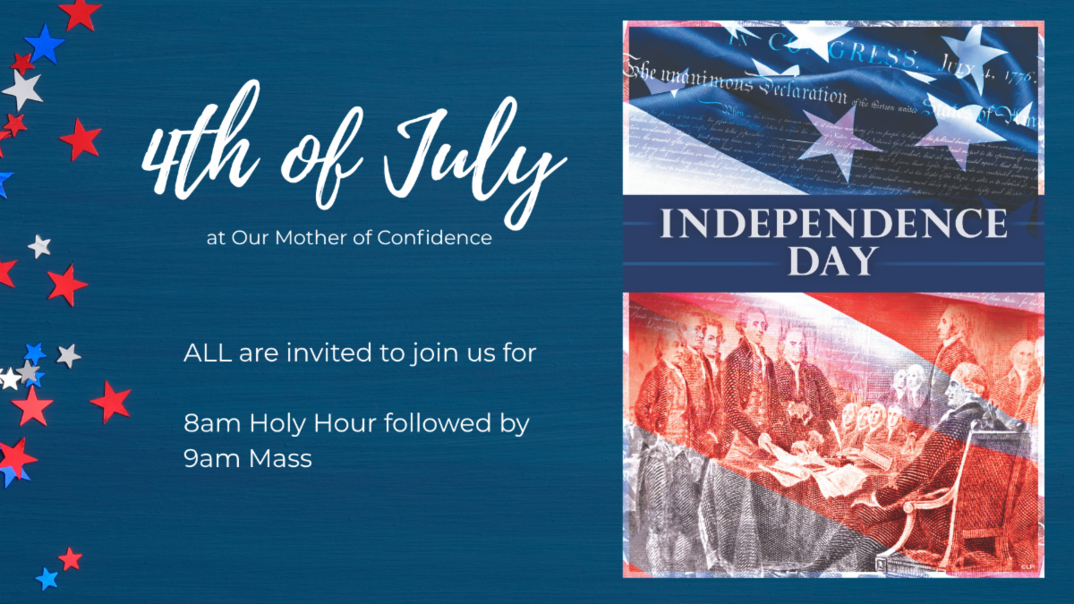 July 4 – 8am Holy Hour and 9am Mass 07/04/2025 8:00 am - 10:00 am Our Mother of Confidence3131 Governor Dr San Diego, CA 92122 Share this:PrintEmailFacebookTwitterTumblrPinterest