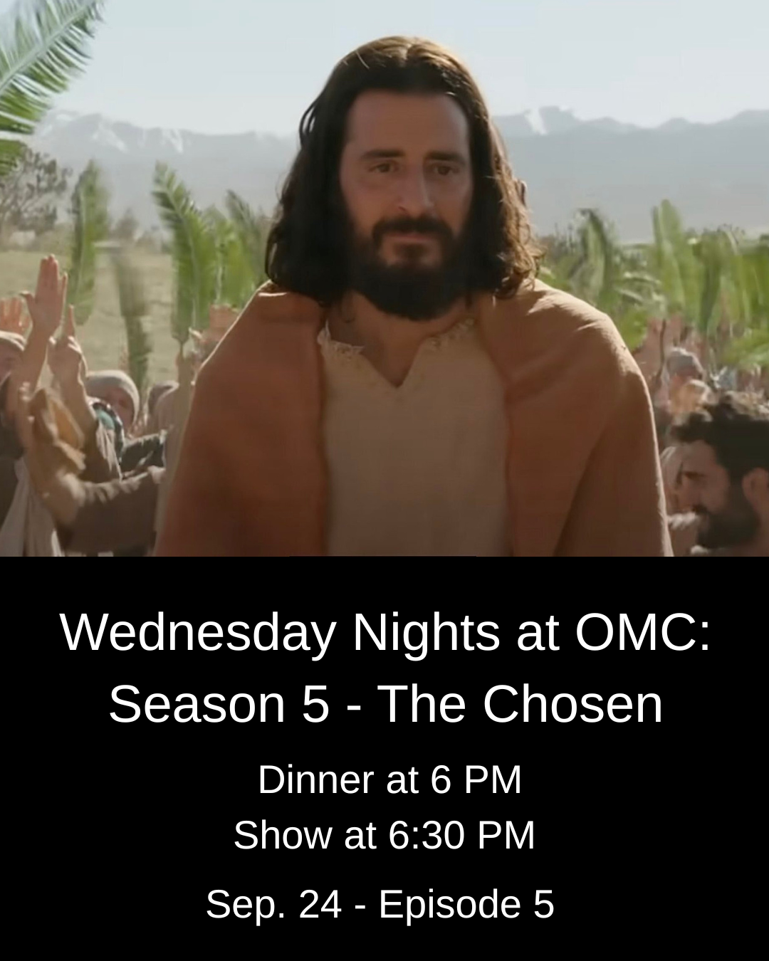 Upcoming Dates The Chosen Season 5 Dinner at 6:00pmVideo at 6:30pm What is Wednesdays at OMC? Father Steven has a Read More »5 months ago